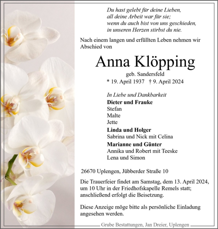 gestorben am 9. April 2024 in Uplengen