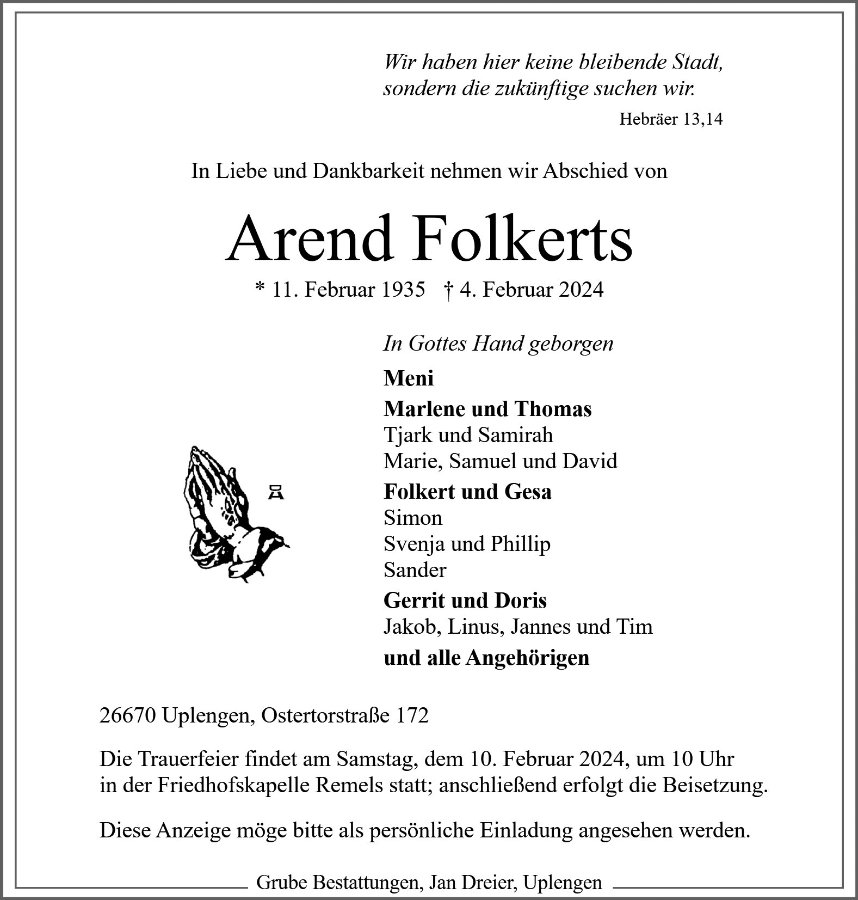 Liebe Familie Folkerts,