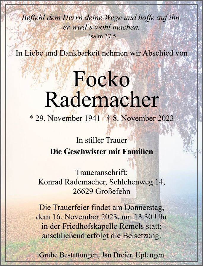 geboren am 29. November 1941 in Zwischenbergen, jetzt Großefehn