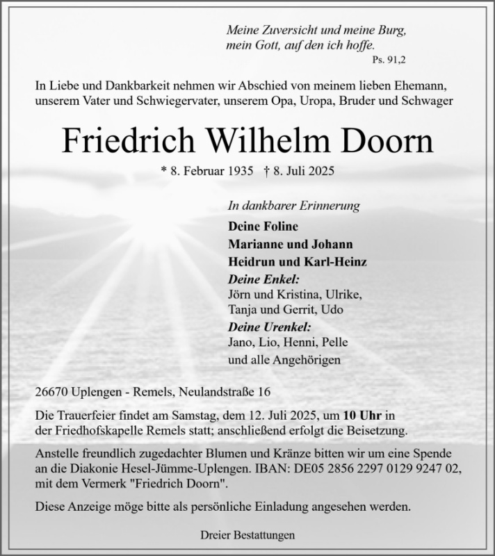 in diesen Tagen fühlen wir mit Ihnen und wünschen Ihnen von Herzen, dass Sie aus den glücklichen Erinnerungen Kraft schöpfen, um positiv in die Zukunft zu gehen. Diese Gedenkseite möge Ihnen dabei helfen, Ihre Trauer zu teilen und das Andenken gemeinsam wachzuhalten.