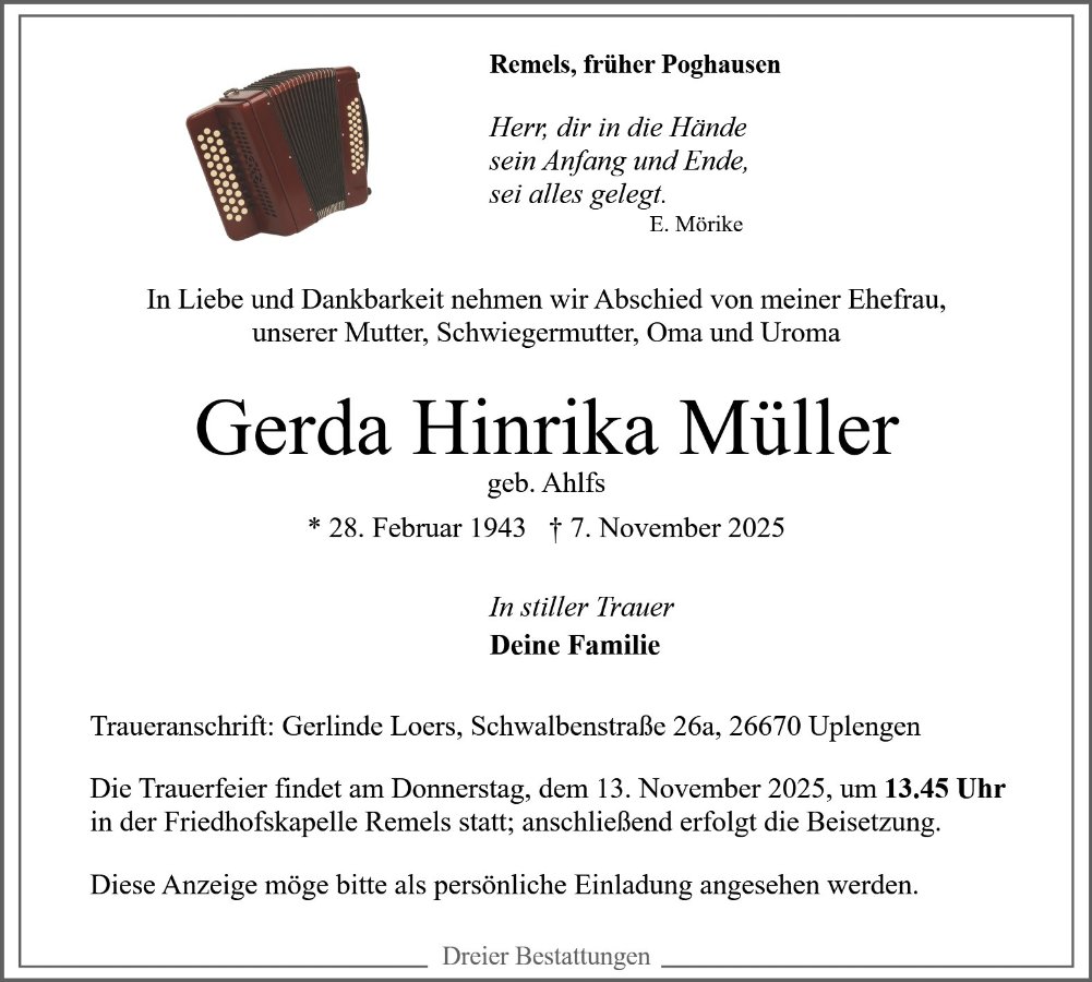 gestorben am 7. November 2025 in Uplengen