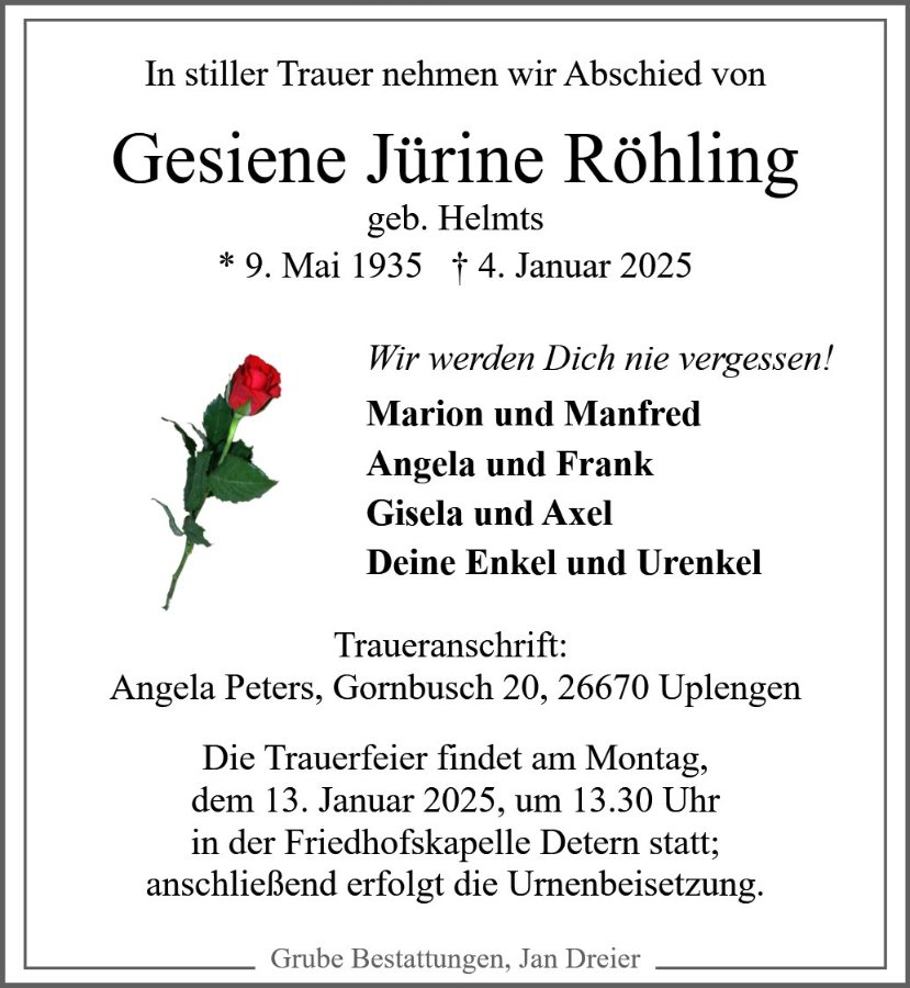 Gesiene Röhling geb. Hellmts