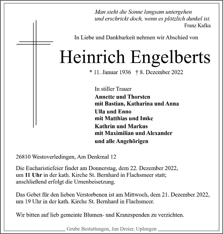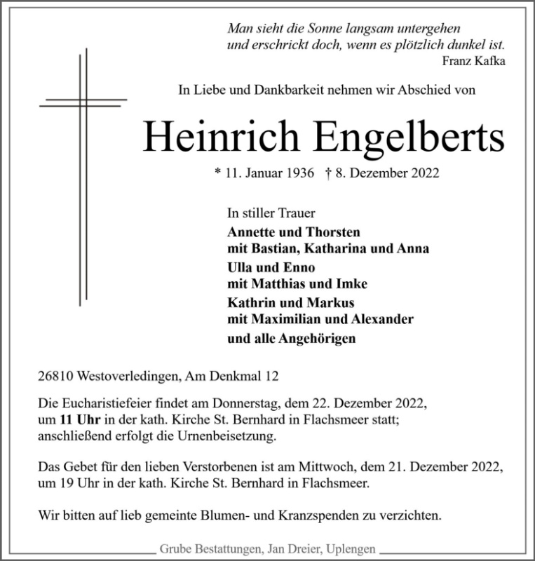 gestorben am 8. Dezember 2022 in Westoverledingen