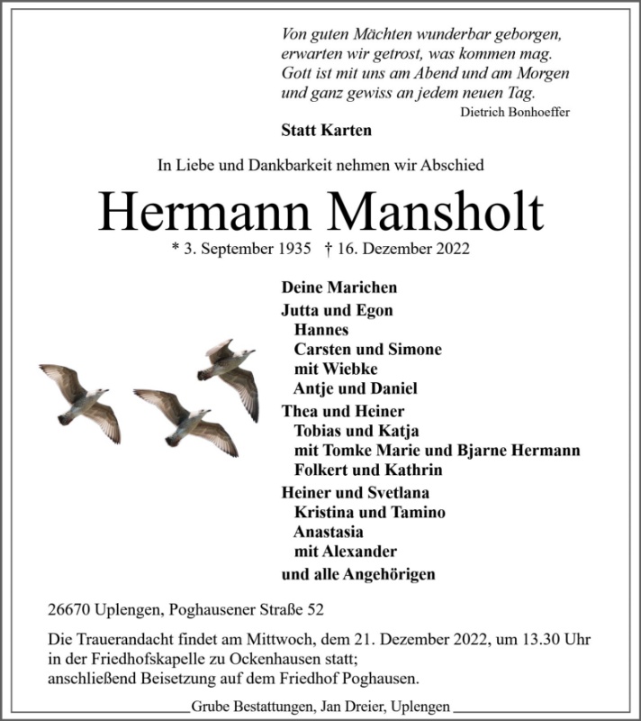 gestorben am 16. Dezember 2022 in Uplengen