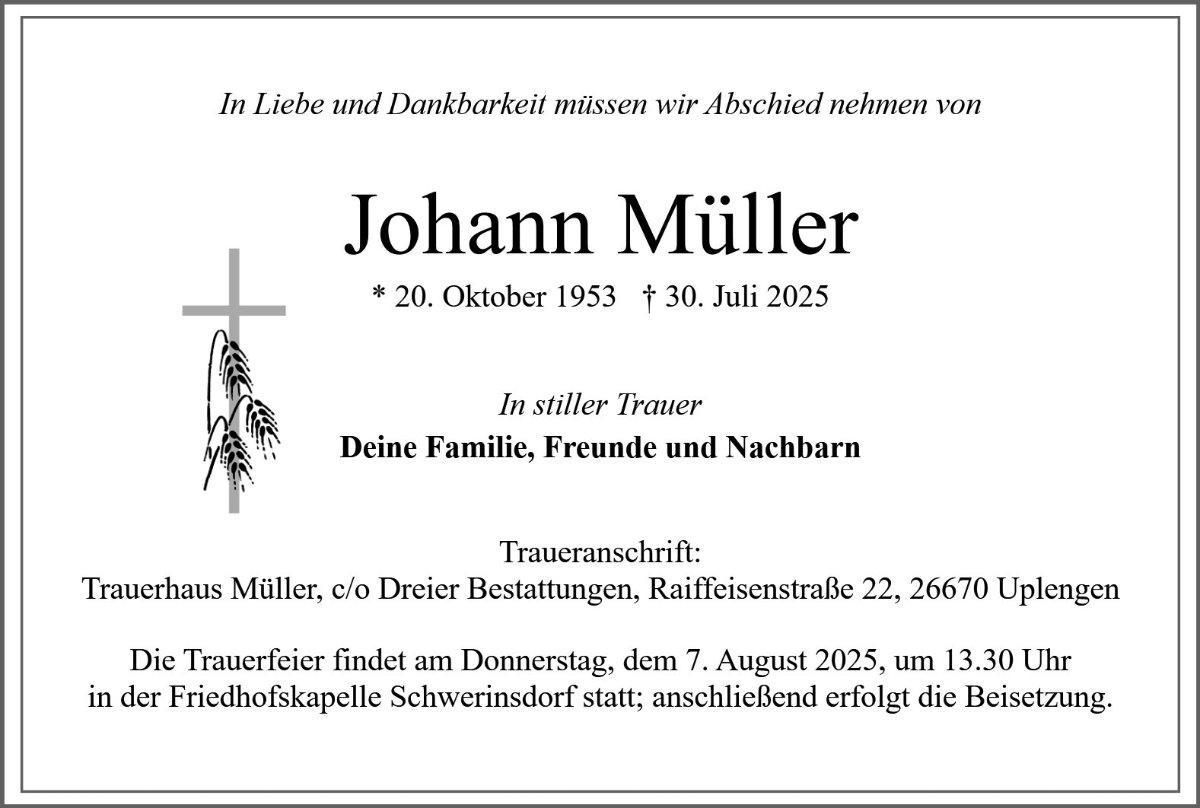 gestorben am 30. Juli 2025 in Schwerinsdorf