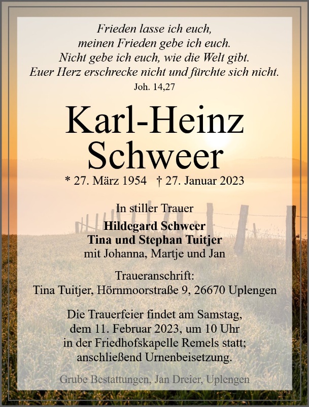 in diesen Tagen fühlen wir mit Ihnen und wünschen Ihnen von Herzen, dass Sie aus den glücklichen Erinnerungen Kraft schöpfen, um positiv in die Zukunft zu gehen. Diese Gedenkseite möge Ihnen dabei helfen, Ihre Trauer zu teilen und das Andenken gemeinsam wachzuhalten.