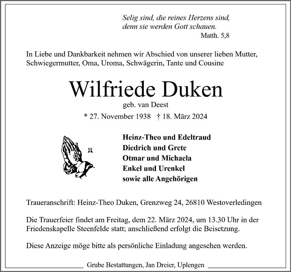 geboren am 27. November 1938 in Steenfelde, jetzt Westoverledingen